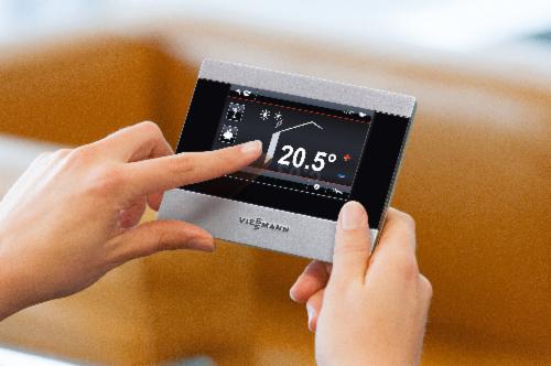 Mit einem großen, farbigen Touch-Display unterstützt die Vitotrol 300 RF den Anwender bei der Heizungsbedienung.